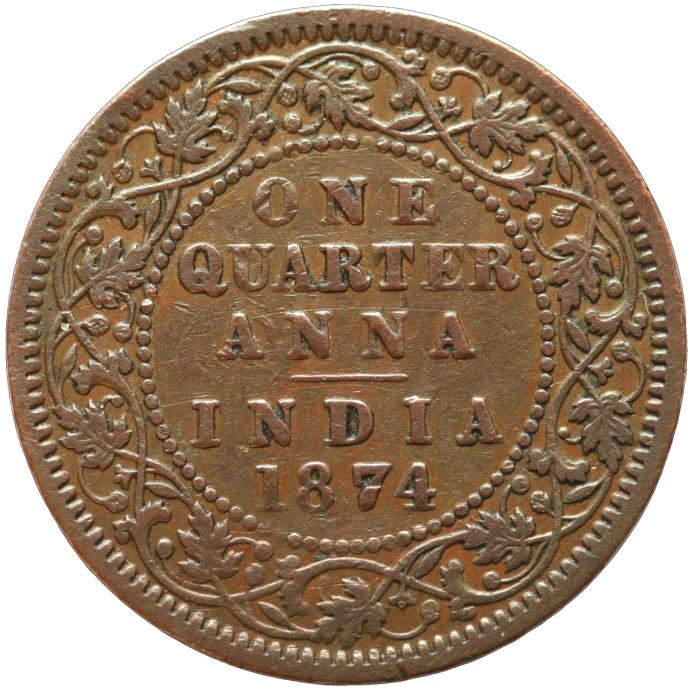 LaZooRo: Britanska Indija 1/4 Anna 1874 VF
