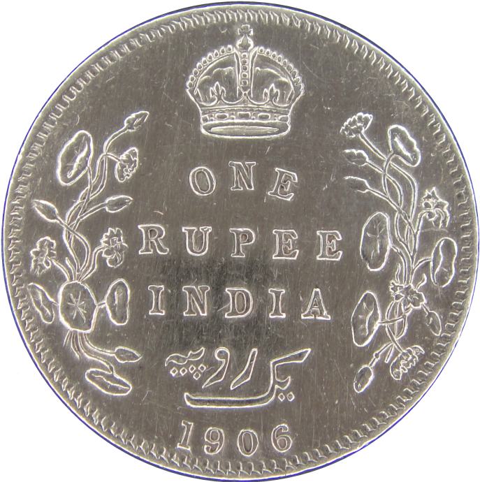 LaZooRo: Britanska Indija 1 Rupee 1906 XF / UNC - srebro