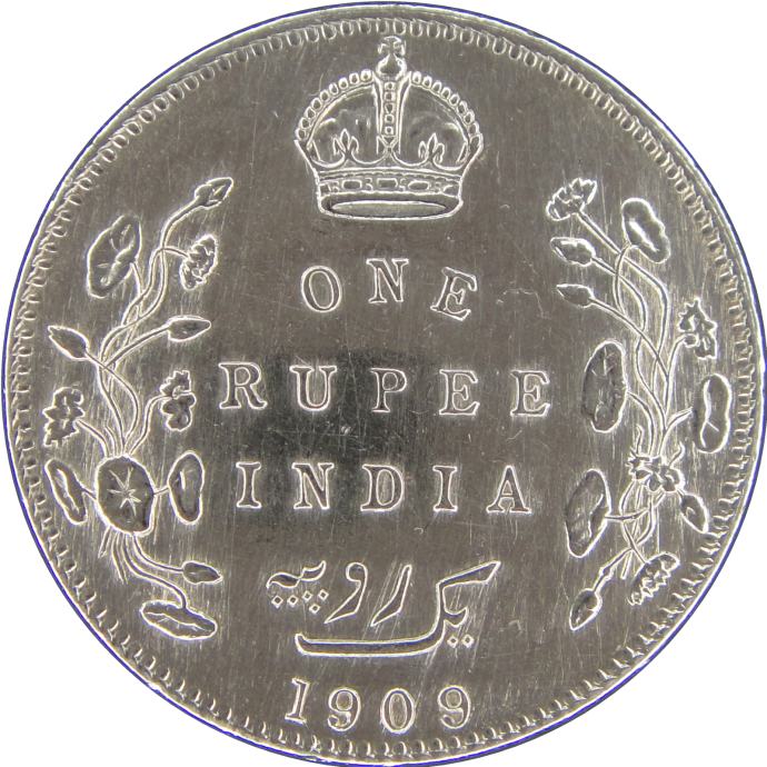 LaZooRo: Britanska Indija 1 Rupee 1909 XF / UNC - srebro