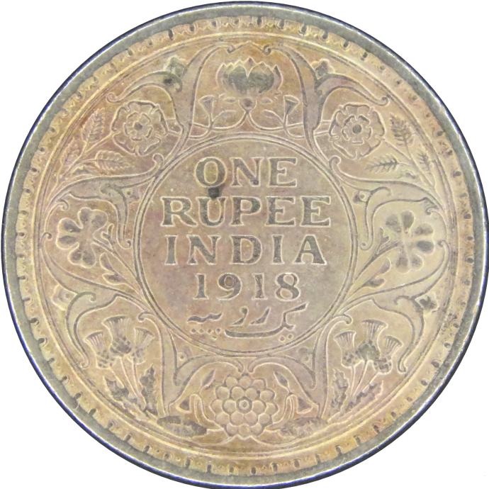 LaZooRo: Britanska Indija 1 Rupee 1918 XF - Srebro