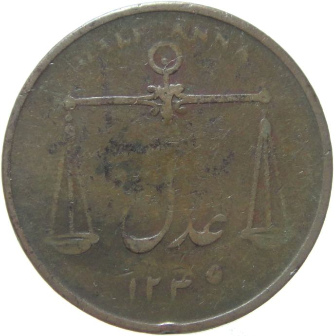 LaZooRo: Britanska Indija BOMBAY 1/2 Anna 1834 F
