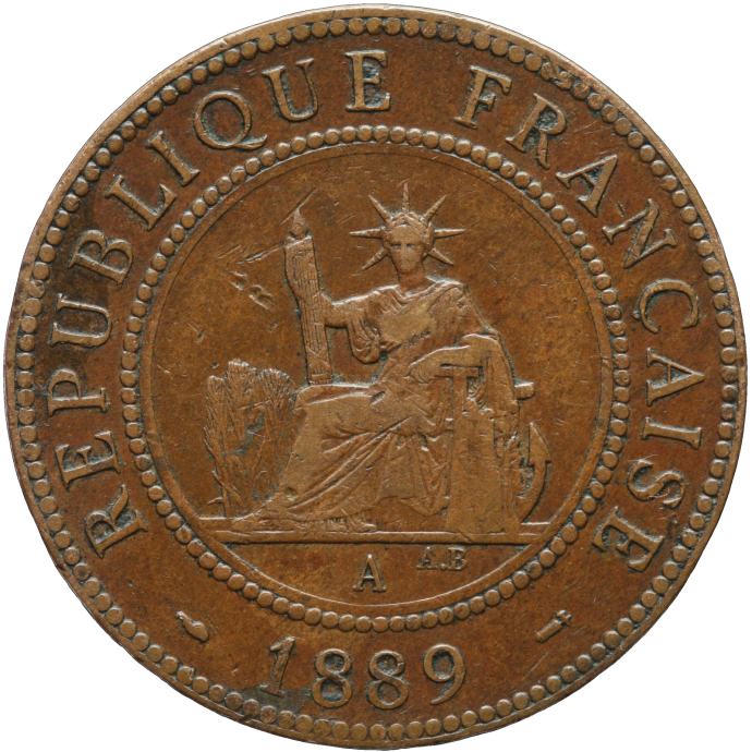 LaZooRo: Francoska Indokina 1 Cent 1889 VF / XF