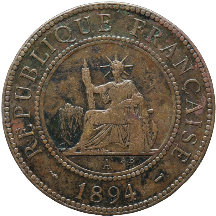 LaZooRo: Francoska Indokina 1 Cent 1894 VF / XF redkejši