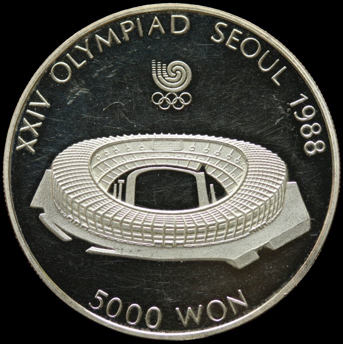 LaZooRo: Južna Koreja 5000 Won 1987 Poletne olimpijske igre 1988 PROOF - Srebro
