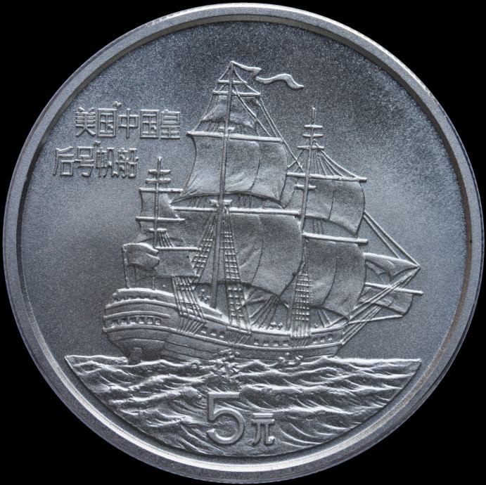 LaZooRo: Kitajska 5 Yuan 1986 The Empress of China, prva ameriška ladja, ki je opravila trgovsko potovanje na Kitajsko UNC - srebro