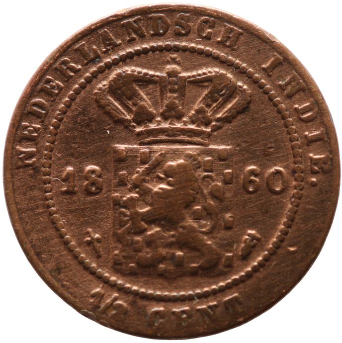LaZooRo: Nizozemska vzhodna Indija 1/2 Cent 1860 VF
