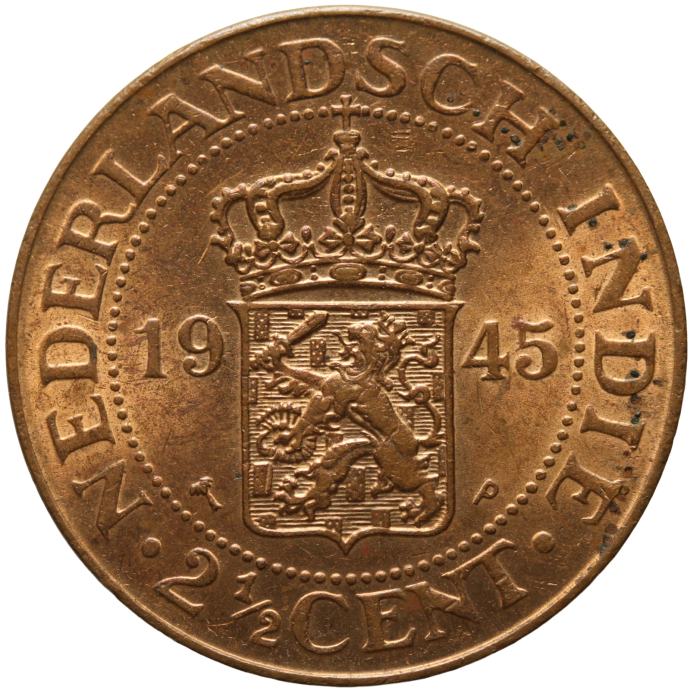 LaZooRo: Nizozemska vzhodna Indija 2 1/2 Cents 1945 UNC