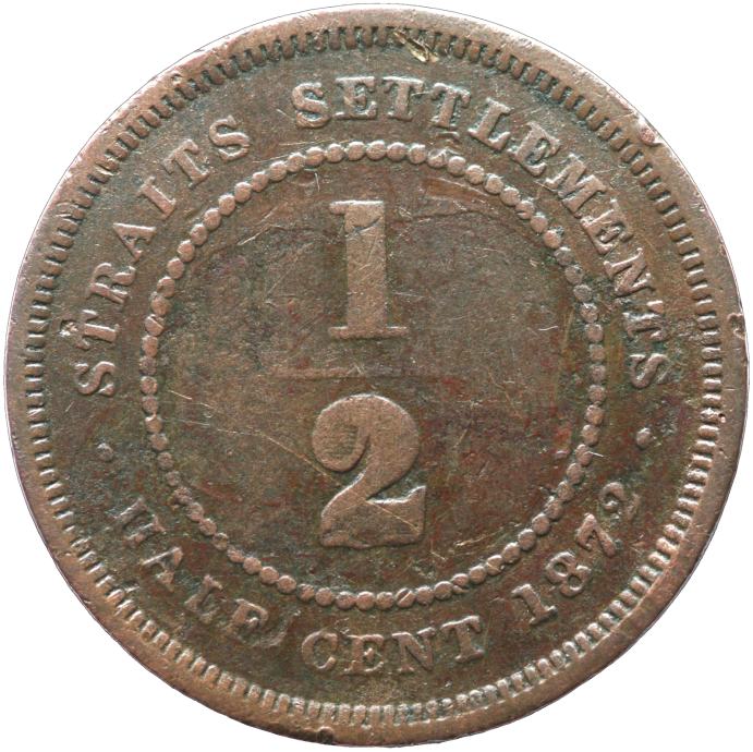 LaZooRo: Straits Settlements 1/2 Cent 1872 H F