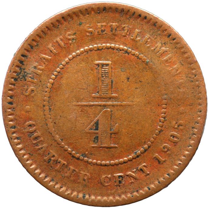 LaZooRo: Straits Settlements 1/4 Cent 1905 VF