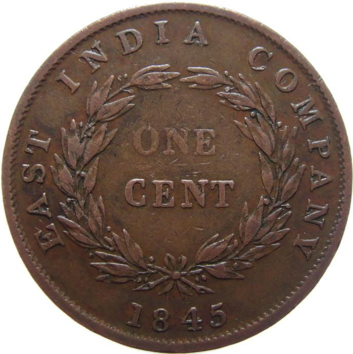 LaZooRo: Straits Settlements 1 Cent 1845 VF