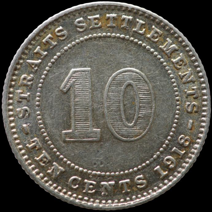 LaZooRo: Straits Settlements 10 Centos 1918 XF / UNC - srebro