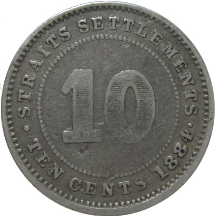 LaZooRo: Straits Settlements 10 Cents 1884 VF - Srebro