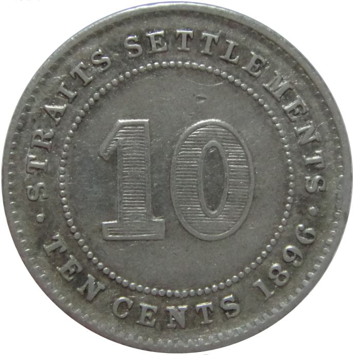 LaZooRo: Straits Settlements 10 Cents 1896 VF - Srebro