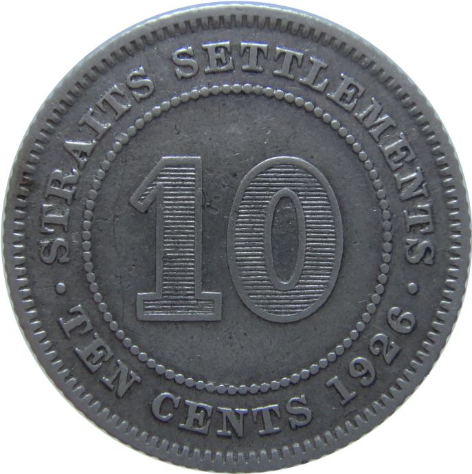 LaZooRo: Straits Settlements 10 Cents 1926 XF - Srebro