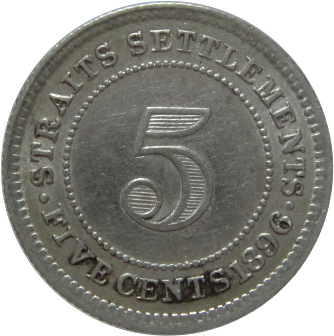 LaZooRo: Straits Settlements 5 Cents 1896 XF a - Srebro