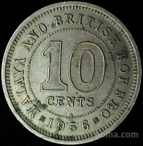 Malaja in Borneo 10 Cents 1956 XF/UNC