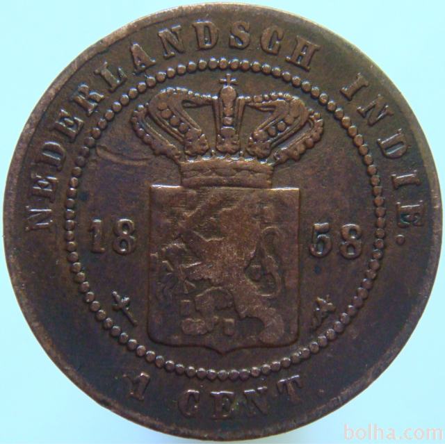 Nizozemski Indiji 1 Cent 1858 VF/XF