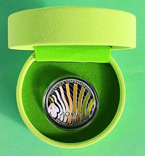 Etui ali škatlica in certifikat sta priložena srebrniku v kapsuli