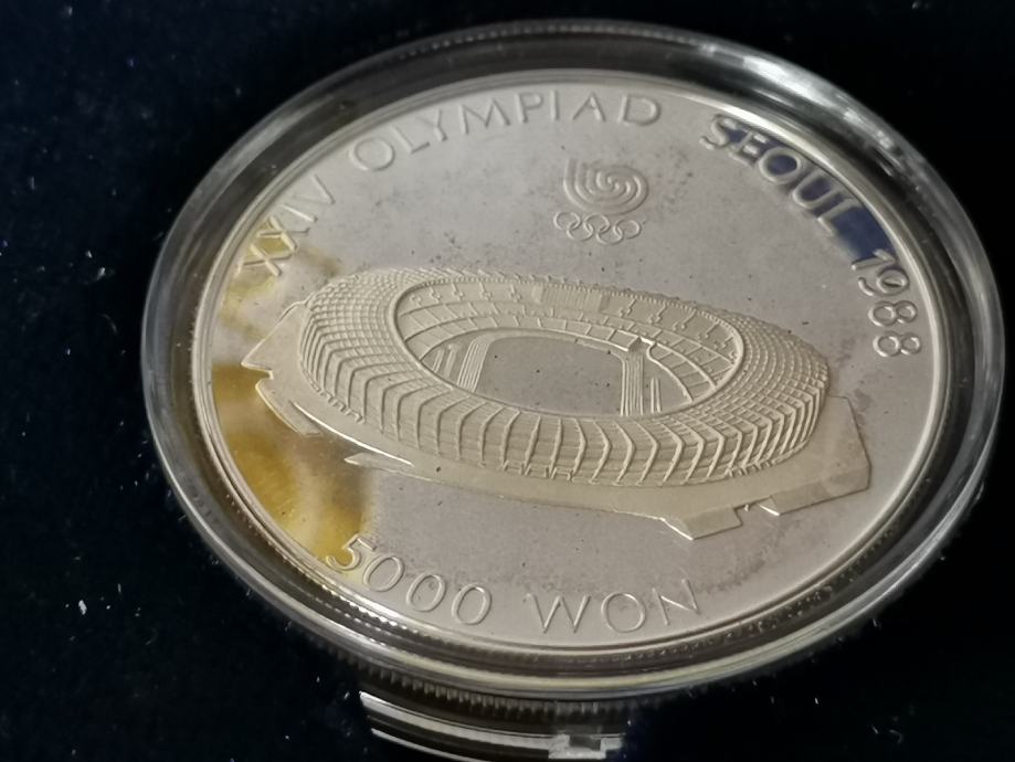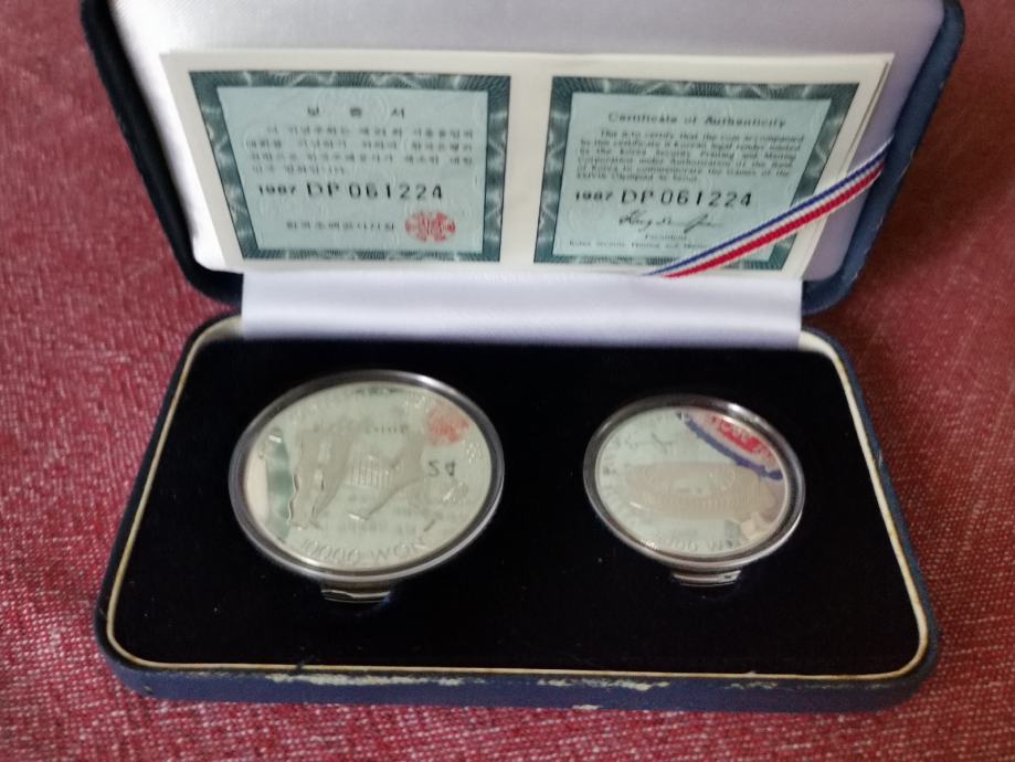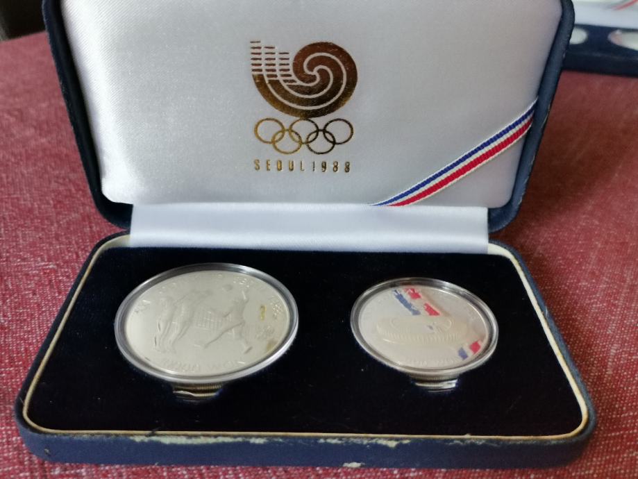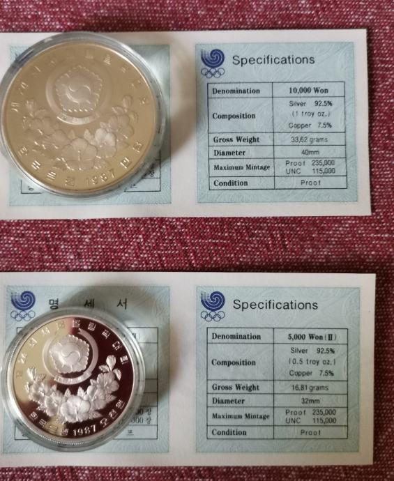 Srebrna kovanca Olimpijske igre Seul 1988, denominacija za 10.000 in 5.000 WON-ov. Vse zapakirano v originalni škatli s certifikatoma.