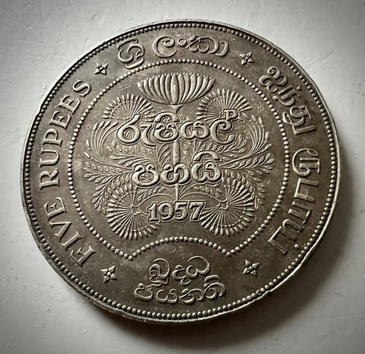 SREBRNIK CEYLON SRI LANKA 1957 2.500 OBLETNICA BUDIZMA 5 rupij (otaku)