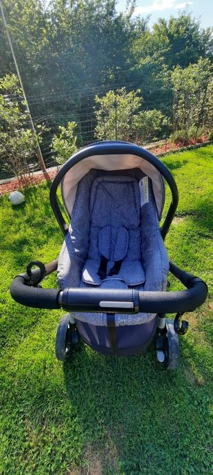 Voziček je sestavljen iz košare za novorojenčka, lupinice in stola od 6mesecev naprej.