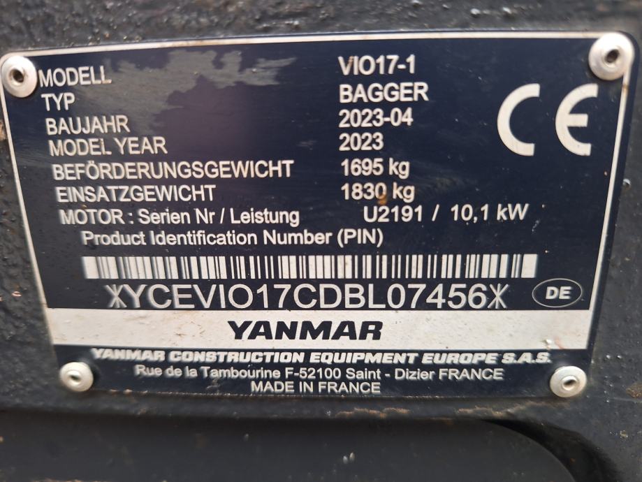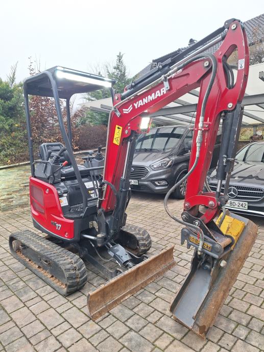 Prodam bager Yanmar VIO17, tovarniška Yanmar garancija do 04/2026 ali do 1.500 delovnih ur, Lehnhoff MS01 hitra menjava, nagibna planirna žlica- komanda na joysticku, razširljivo podvozje, dve brzini, led delovne luči, CE dokument, dva ključa, narejen servis, lahko v kompletu z novimi žlicami, dostava, menjava, leasing...