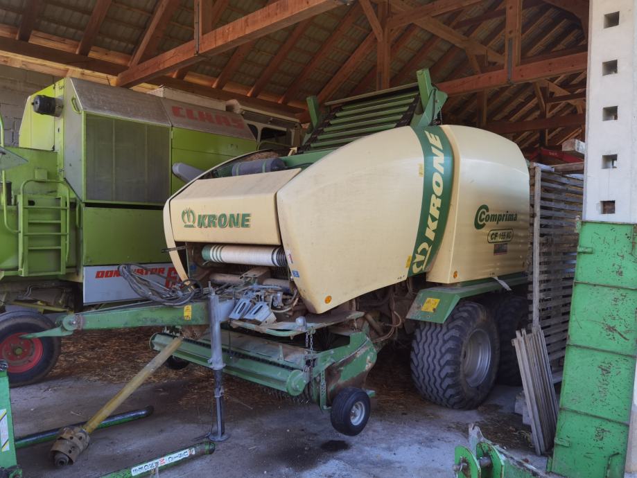 Balirka Krone Comprima CF 155 XC, letnik 2010, dobro ohranjena in redno vzdrževana. Tandem podvozje, odmični pobiralni greben z noži, ročno nastavljiva vario komora. 2 leti nazaj zamenjan elevator. 19800 bal.