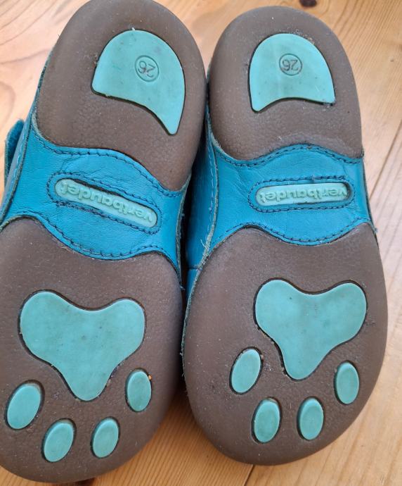 Otroški usnejni čeveljčki. Lepo ohranjeni, malo nošeni. Zelo mehki. Znamka Vertbaudet. Zapiranje na ježke, na dveh straneh. Izmerjena notranja dolžina približno 17 cm, širina približno 6 cm.