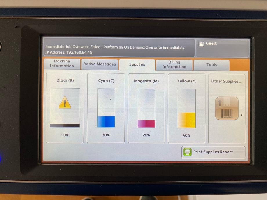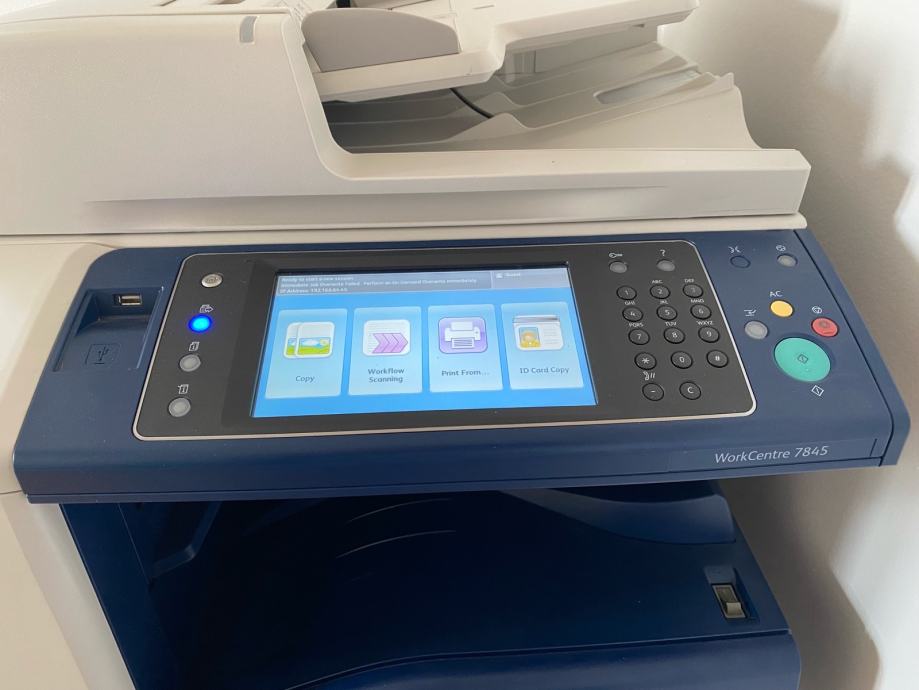 Stroj je kot nov brez praske. Potrebno bo počasi zamenjati ČB toner ( 26.000 kopij na toner).
