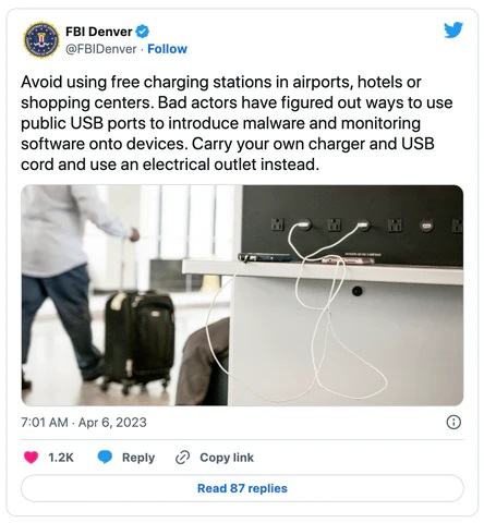 usb zaščita pred krajo podatkov, na javnih polnilnicah lahko polnite svojo napravo- telefon , tablico brez bojazni, da vam bodo naložili kak malware, virus, ali pa ukradli vaše podatke. Tudi CIA opozarja pred tem, problem so javnio polnilnice, lokali, letališča, nakupvalna središča, ki vam v zameno za brezplačno polnjenje lahko ukradejo vašo zasebnost... Priklopi se pred polnilinm kablom.