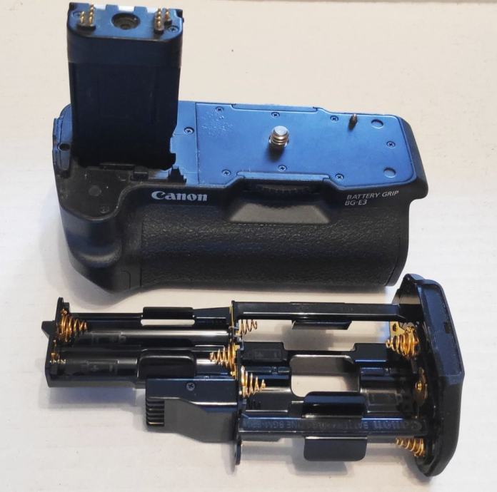 Baterijsko držalo Canon BG-E3 je primerno za Canon Eos 350D, 400D, Rebel XT DSLR zrcalno refleksne fotoaparate. Prav tako pa je v paket vključen tudi adapter za uporabo 6 AA navadnih ali polnilnih baterij.