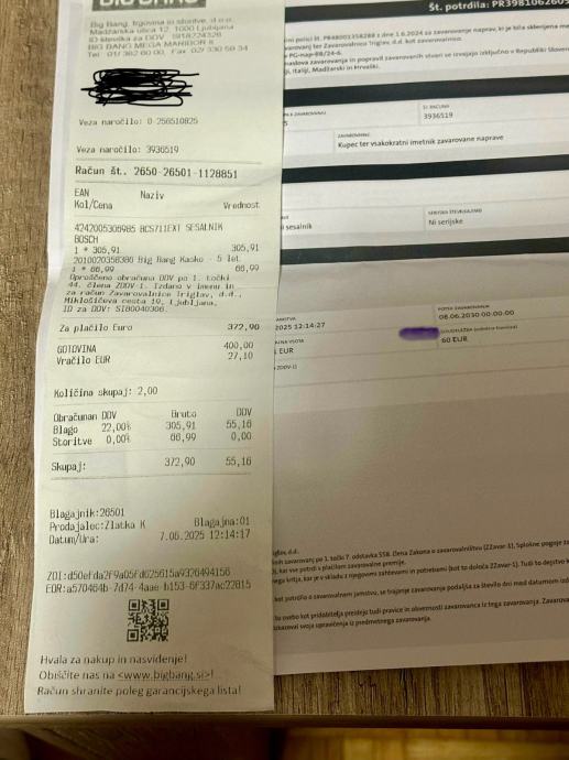 Sesalec je kupljen junija 2025, 2 krat uporabljen.