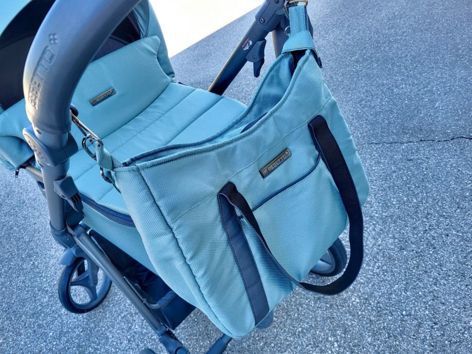 Ob vozičku pride zraven še previjalna torba, komarnik, držalo za flaško in pokrivalo za nogice za športni del vozička.