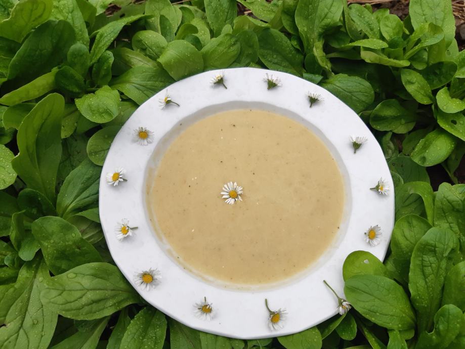 Zelenjavna juha je pripravljena iz domačih sestavin: bučke, korenček, brokoli, cvetača, peteršilj, krompir, čebula, lovorjev list, sol, poper, voda.
