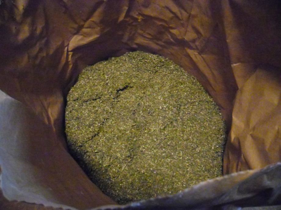 Posušeni konopljini vršički, cvetovi, listi; brez stebel in brez semen, zdrobljena v prah.