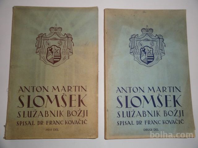 Knjigi ANTON MARTIN SLOMŠEK, SLUŽABNIK BOŽJI, SPISAL DR FRANC KOVAČIČ, 1 IN 2 DEL, ZALOŽILA DRUŽBA SV MOHORJA V CELJU 1934, broširani, dobro ohranjeni, v kompletu obe knjigi za 15 evrov.