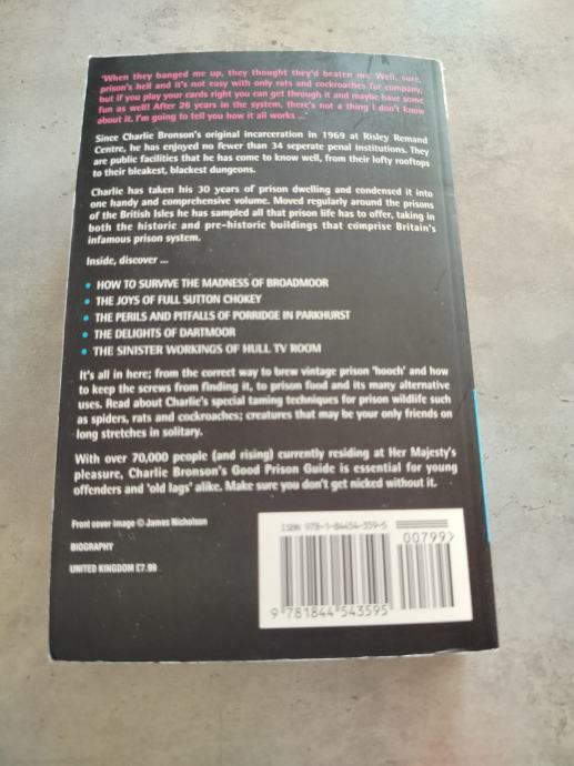 Charlie has taken his 24 years of experience of prison dwelling and condensed it into one handy and comprehensive volume. Moved regularly around the prisons of the British Isles he has sampled all that prison life has to offer, taking in both the historic and pre-historic buildings that comprise Britain's infamous prison system. It's all in here from the correct way to brew vintage prison 'hooch' and how to keep the screws from finding it, to the indispensable culinary methods required to make prison food edible. Read about Charlie's special taming techniques for prison wildlife such as spiders, rats and cockroaches, creatures that may be your only friends on long stretches in solitary. Also Charlie shows how to plan and prepare for marriage inside what can be seen as a less than romantic setting. With over 70,000 people (and rising) currently residing at Her Majesty's pleasure, Charlie Bronson's "Good Prison Guide" is essential for young offenders and 'old lags' alike. Make sure you don't get nicked without it.