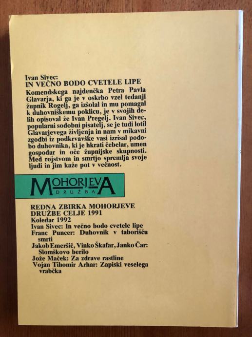 Prodam odlično ohranjen roman z naslovom In večno bodo cvetele lipe, pisatelja Ivana Sivca. Roman je izšel pri Mohorjevi družbi, leta 1991, je v mehki vezavi in ima 221 strani.