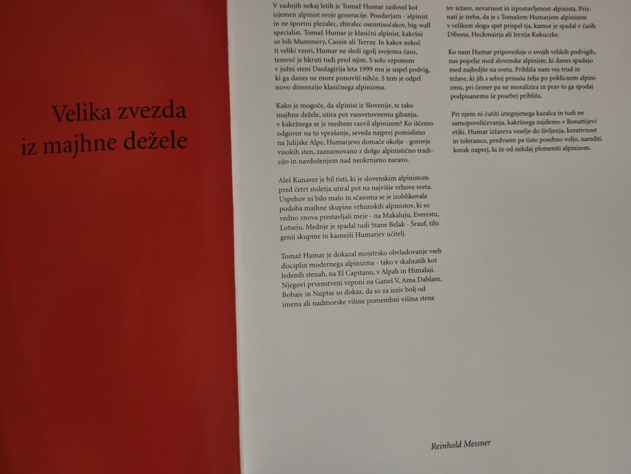 Prodam avtobiografijo vrhunskega alpinista Tomaža HUMARJA - Ni nemogočih poti, s predgovorom Reinholda Messnerja.
