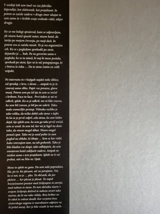V knjigi sledimo avtorjevim osebnim zgodbam, spominom, napetim in srečnim trenutkom v gorah - od Kamnika do Himalaje.