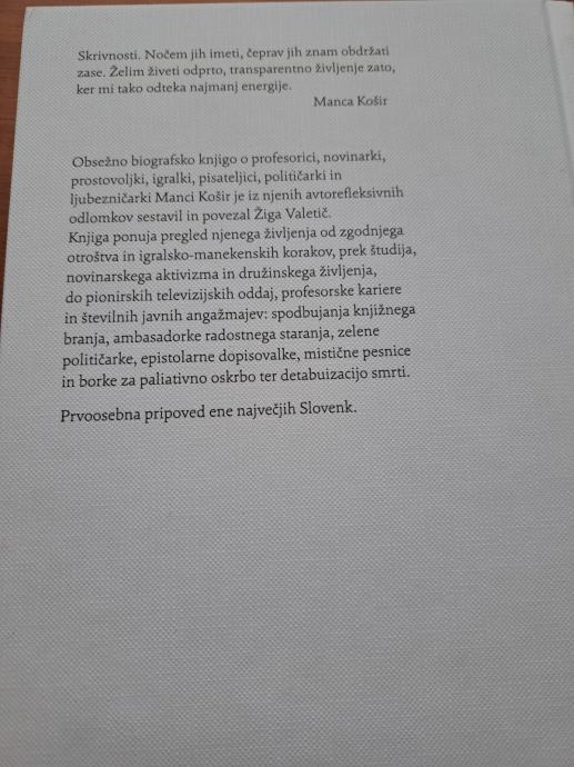 Knjiga je nova, z osebnimi podpisi Mance Košir, hčere Ladeje in urednika Žige. Nova knjiga v knjigarni stane 37.90 EUR. Imam veliko ostalih stvari pod mojimi oglasi. Knjigo prodajam brez storitve Brez skrbi. 041 305 357