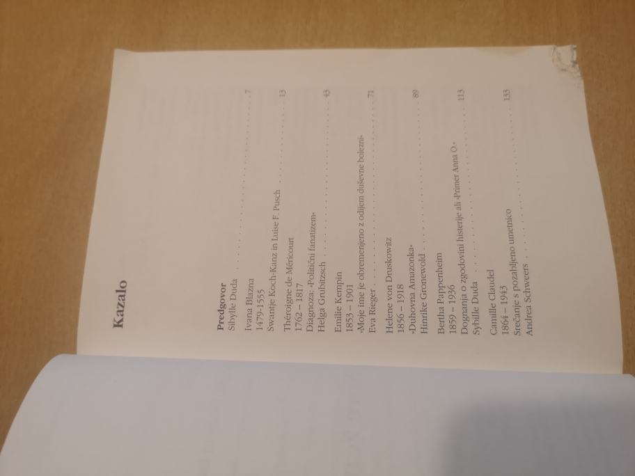 V zborniku lahko izveste več o domnevni blaznosti in življenjskih okoliščinah znanih žensk od petnajstega do dvajsetega stoletja: o Ivani Blazni, kiparki Camille Claudel, pisateljicah Virginiji Woolf in Sylviji Plath ter drugih.