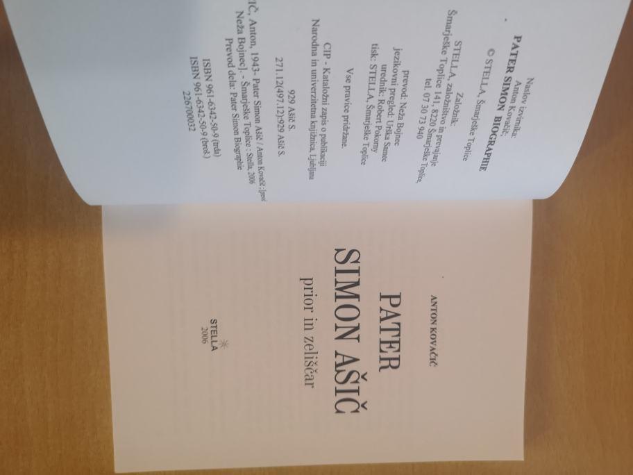 Naslov Pater Simon Ašič : prior in zeliščar : [življenje med meditacijo in zdravilnimi zelišči] / Anton Kovačič ; [prevod Neža Bojnec]
