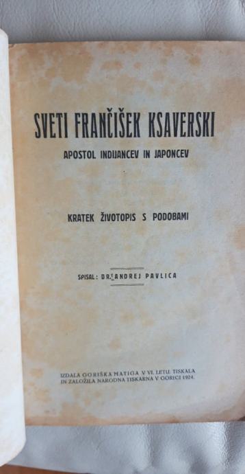 Prodam lepo ohranjeno knjigo SV. FRANČIŠEK KSAVERSKI APOSTOL INDIJANCEV 1924