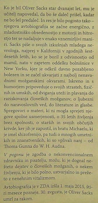 V POGONU; NEKO ŽIVLJENJE, Oliver Sacks