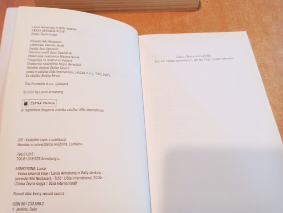 Naslov Vsaka sekunda šteje / Lance Armstrong in Sally Jenkins ; [prevedel Niki Neubauer]