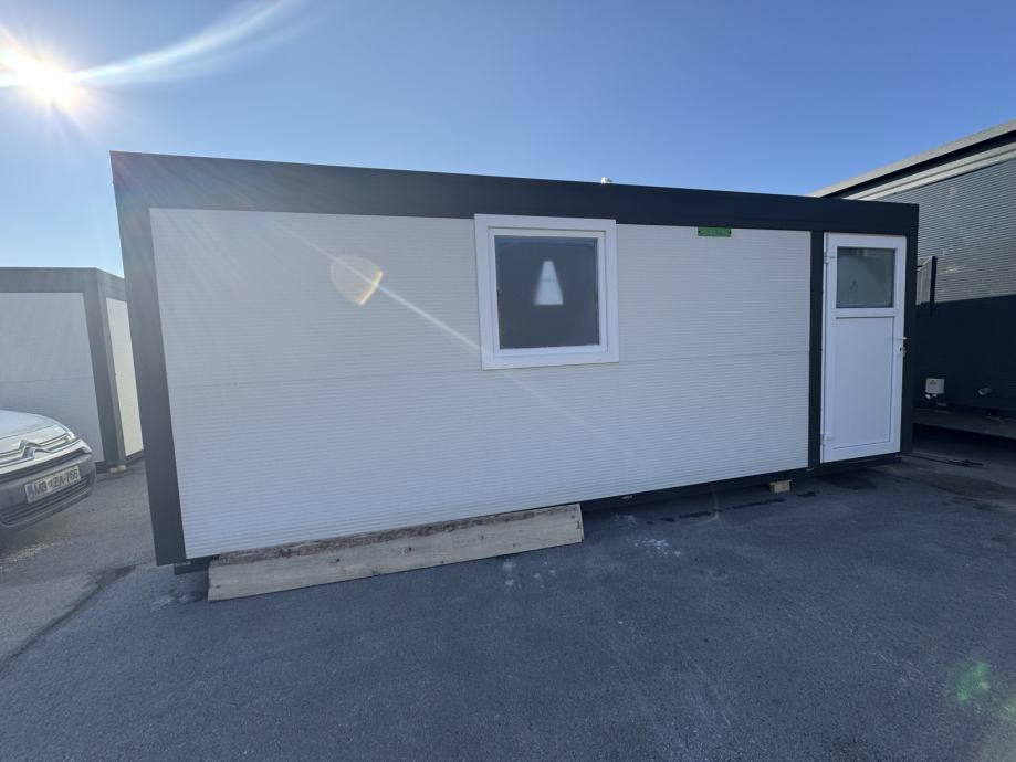 Osnovni kontejner dimenzij 6×2,3 metra je enostaven in funkcionalen prostor, ki je popolnoma izoliran, kar zagotavlja udobno temperaturo v vseh letnih časih. Zasnovan je v beli barvi in opremljen z antracitnim oknom ter preklopnimi vrati za enostaven dostop. V notranjosti so že nameščeni luč in vtičnica, kar omogoča takojšnjo uporabo za osnovne električne potrebe. Ta kontejner je odlična izbira za podjetja, ki iščejo preprost, a kakovosten prostor za različne potrebe, bodisi kot pisarno bodisi za shranjevanje, s prednostjo, da je pripravljen za takojšnjo uporabo.