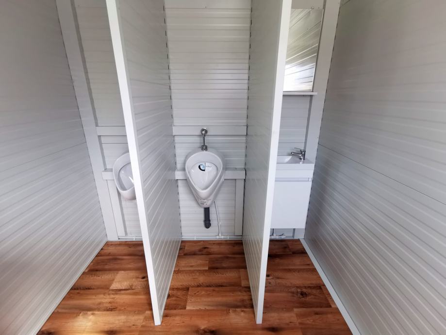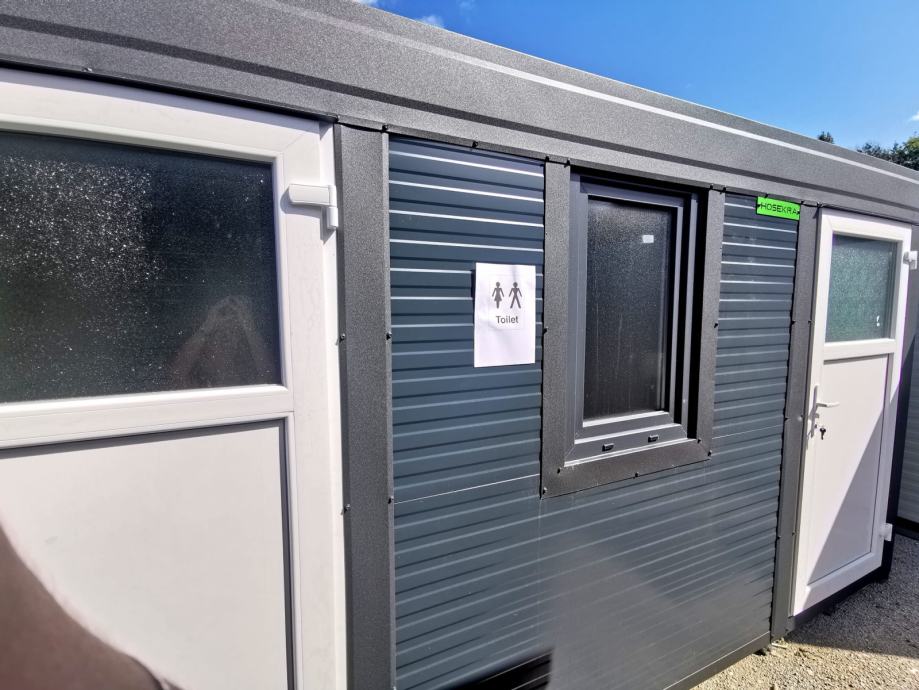 Wc kontjner antracit barve, komplet izoliran in opremljem z moškim in ženksim delom ločenim.