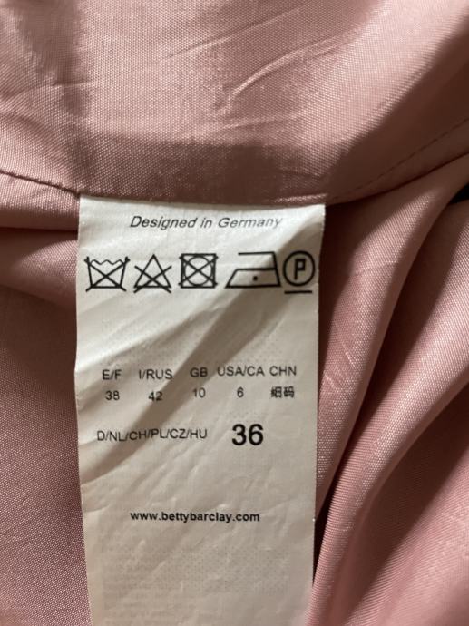 Betty Barclay ženska jaknica/suknjič v pudrasto roza barvi je velikost 36, s 3/4 rokavi.
