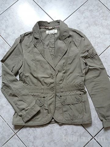 Prodam lepo ohranjeno tanko poletno jaknico št. S, olivne barve, ozek kroj z lepimi okrasnimi detajli.